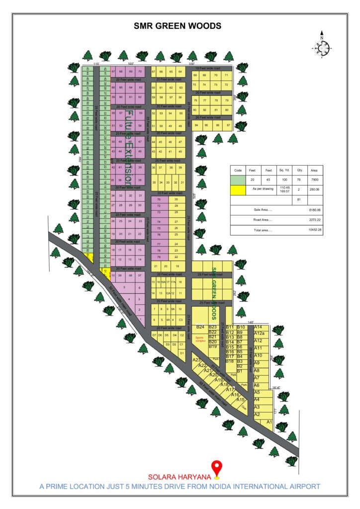 SMR Green Wood by AGF is a premier real estate project offering 100 and 200 sq. yard plots located just 3.1 km from the highly anticipated Noida International Airport (Jewar Airport). This prime location ensures excellent future growth prospects as the airport is poised to be a key economic hub in the region.